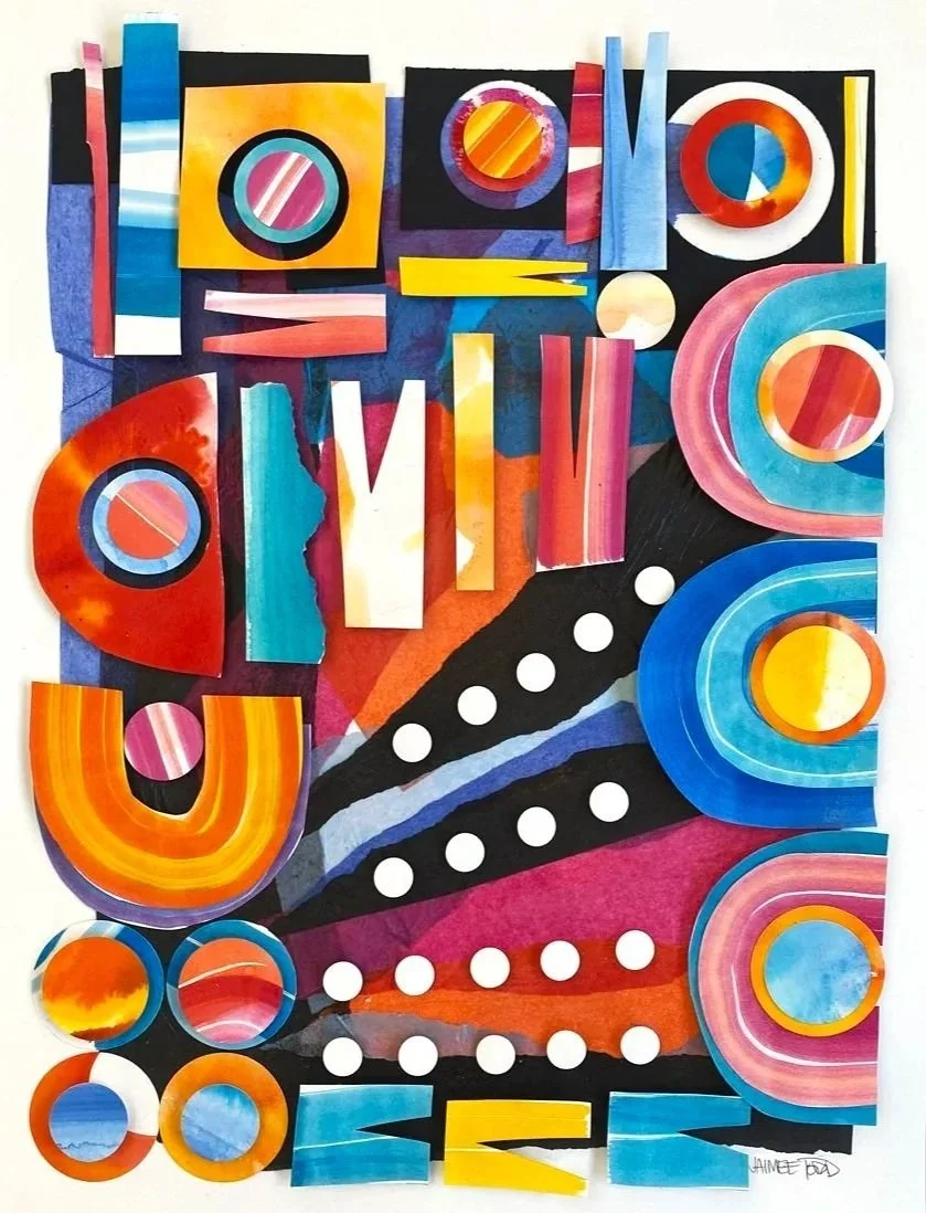 During my last residency, a collector had commented that my work looks like music, specifically jazz. It was the first time someone had made that observation, but it totally makes sense; not only because it’s one of my favorite musical genres that I listen to while I work, but my abstract collages are totally improvised. I approach each piece without a roadmap and let the colors and shapes guide me to a composition, which, as someone who neurotically plans ahead so often, is such a liberating departure.